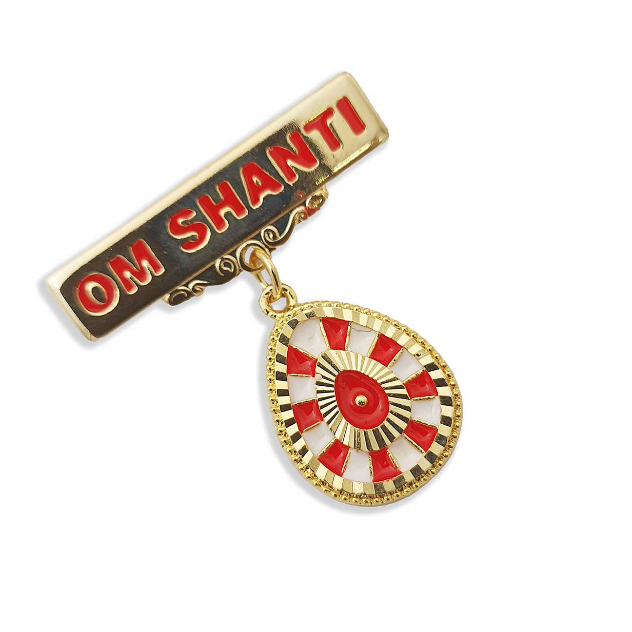 ✨ Shiv Baba Pear Shaped Golden Badge with White & Red Rays of Blessings