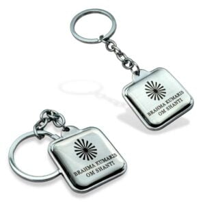 ✨ Brahma Kumaris Shiv Baba Red Keychain Square Metal key chain With Gold Polish.