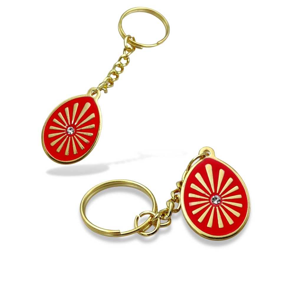🌟 Brahma Kumaris Shiv Baba Red Keychain, Red Meena & Golden Rays With White Diamond Stone On It.